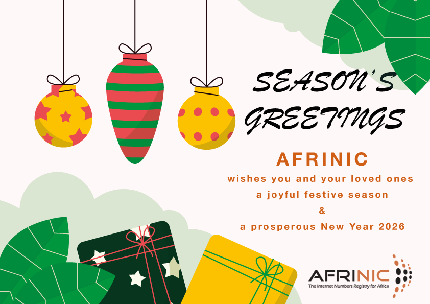 As this 2025 year comes to a close, we extend our sincere appreciation to our Members, Community, and Partners for your continued trust, engagement and support. Your resilience, active participation and commitment have played a vital role in strengthening AFRINIC’s stability and advancing our shared mission to support and grow Africa’s Internet ecosystem.